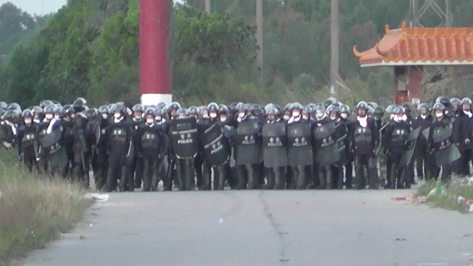 刘先生说,村民只是想争得一些合法权利,为什么像对待强大的敌人,政府用战争的装备和规模来对付自已的人民,而且是一群地地道道的农民,不懂军事、也不懂政治,只为温饱而维权的弱势群体。前几天抓了几个村民也是偷偷摸摸的,没有逮捕证,到底谁正谁邪已一目了然。