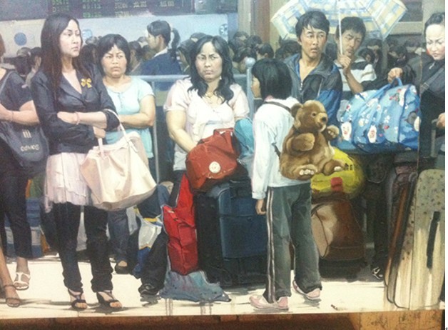 他们几乎没有一个处于放松状态,如果不能嫌魂不守舍太过夸张,那就换成文雅一点的――不在当下。他们焦虑,茫然,无助,又无辜。这是三年前的表情,卯丁魏艺及其团队,在阴雨绵绵的广州火车站前,一一拍摄下人们的表情,花了近两年工夫,绘制出这么一幅纪实长卷。