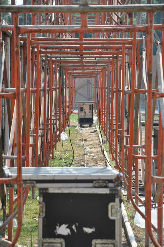 所以,这次到舞台搭建现场一看究竟,看看演出的设备专不专业,这样就知道主办方到底有没有用心来办这次的演唱会,看看对不对得起我们的一百元门票钱。
