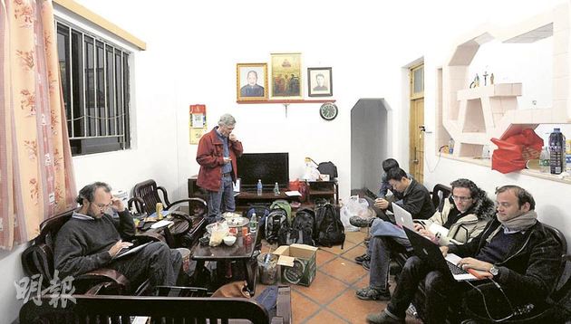 来自美、英、法、日、港和大陆的记者,每次完成采访都聚集在新闻中心向外发布最新图片和稿件,BBC、NHK电视台、《纽约时报》等多名记者齐齐坐在木椅上工作,由于空间有限,部分人要坐在庭院上网。每逢用膳时间,村民都会准备粥饭招待。昨入夜后,不断有媒体突破武警封锁进入乌坎。《每日电讯报》记者Moore形容,媒体犹如潮水般涌入。