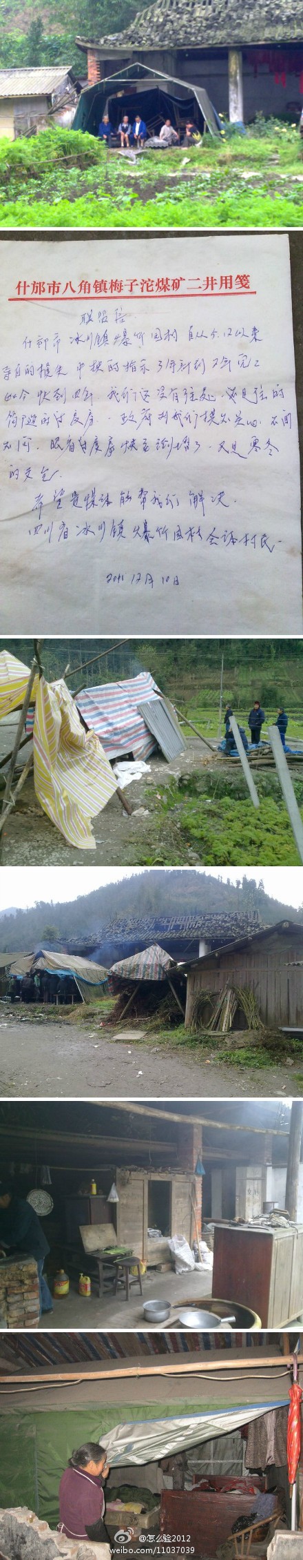 @清香独韵【汶川地震重灾区灾民近日封路抗议!:三年后仍住临时帐篷!】什邡市八角镇爆竹园村,512地震的极重灾区,距震中仅20公里,但地震三年后的今天,灾民仍住在临时帐篷!自12月8日起,灾民忍无可忍之下,自发组织封路抗议!!大家捐的钱呢?!都TM喂了狗了?! (转自微博)