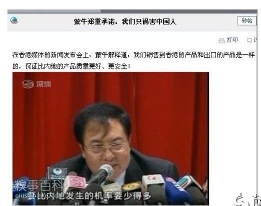 蒙牛纯牛奶检出强致癌物 未说明是否流入市场 (2人在浏览)