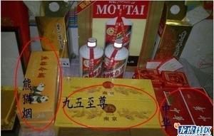 “李长伟家里的”多张清晰照片。房内堆满了成堆的名烟名酒、礼品盒,进门处的一个桌子上则铺满了金鹰、中央等南京各大商场的VIP购物卡。其余几张照片则从局部放大了相关礼品的细节,相关的局部特写和注释分别为“28张购物卡”、“成箱五粮液”、“礼品盒装五粮液”、多瓶茅台酒以及多条南京“九五至尊”香烟。