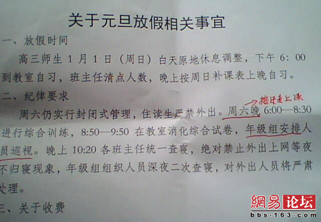贫困县中学元旦补课一分钟收费一元钱