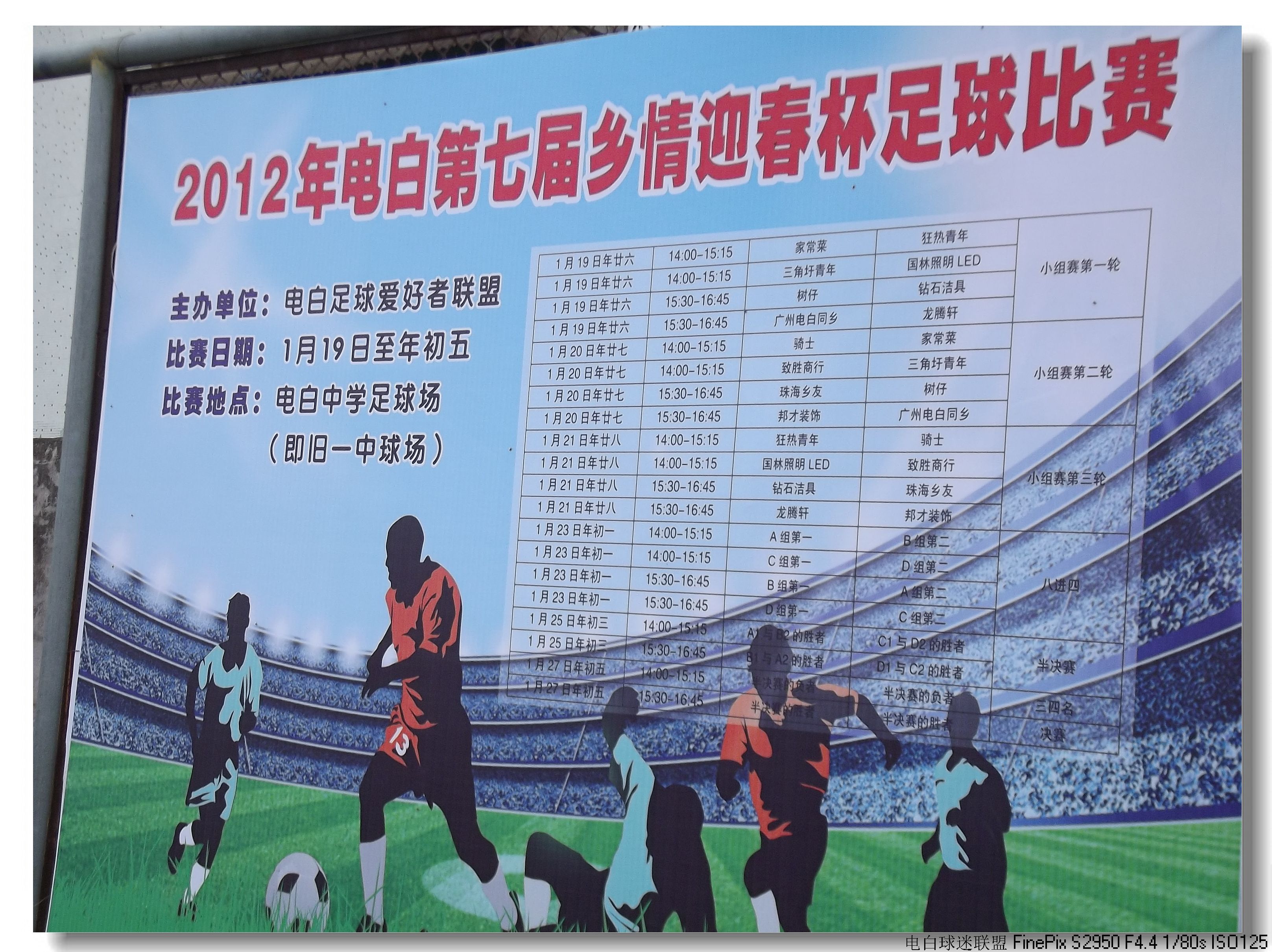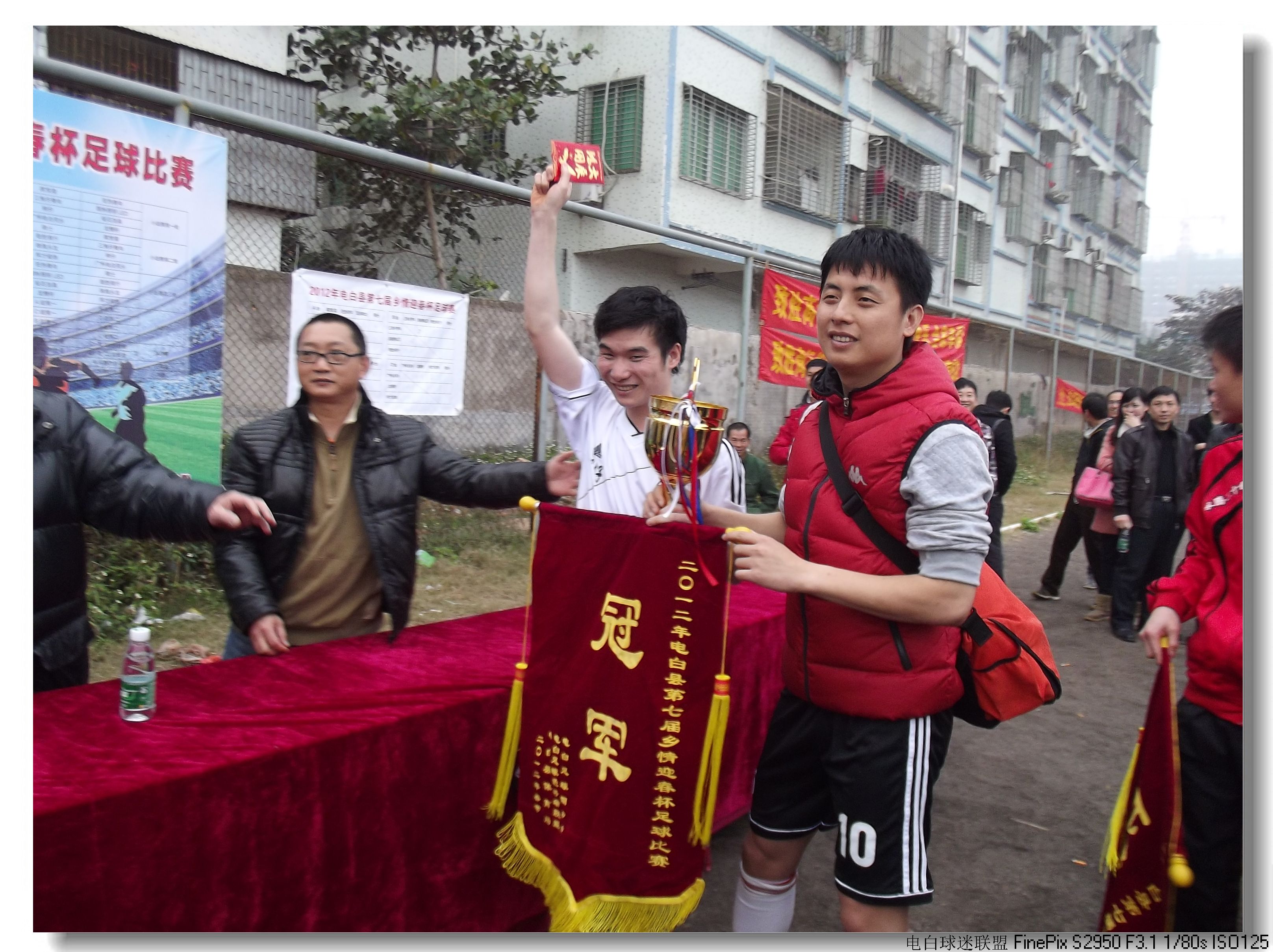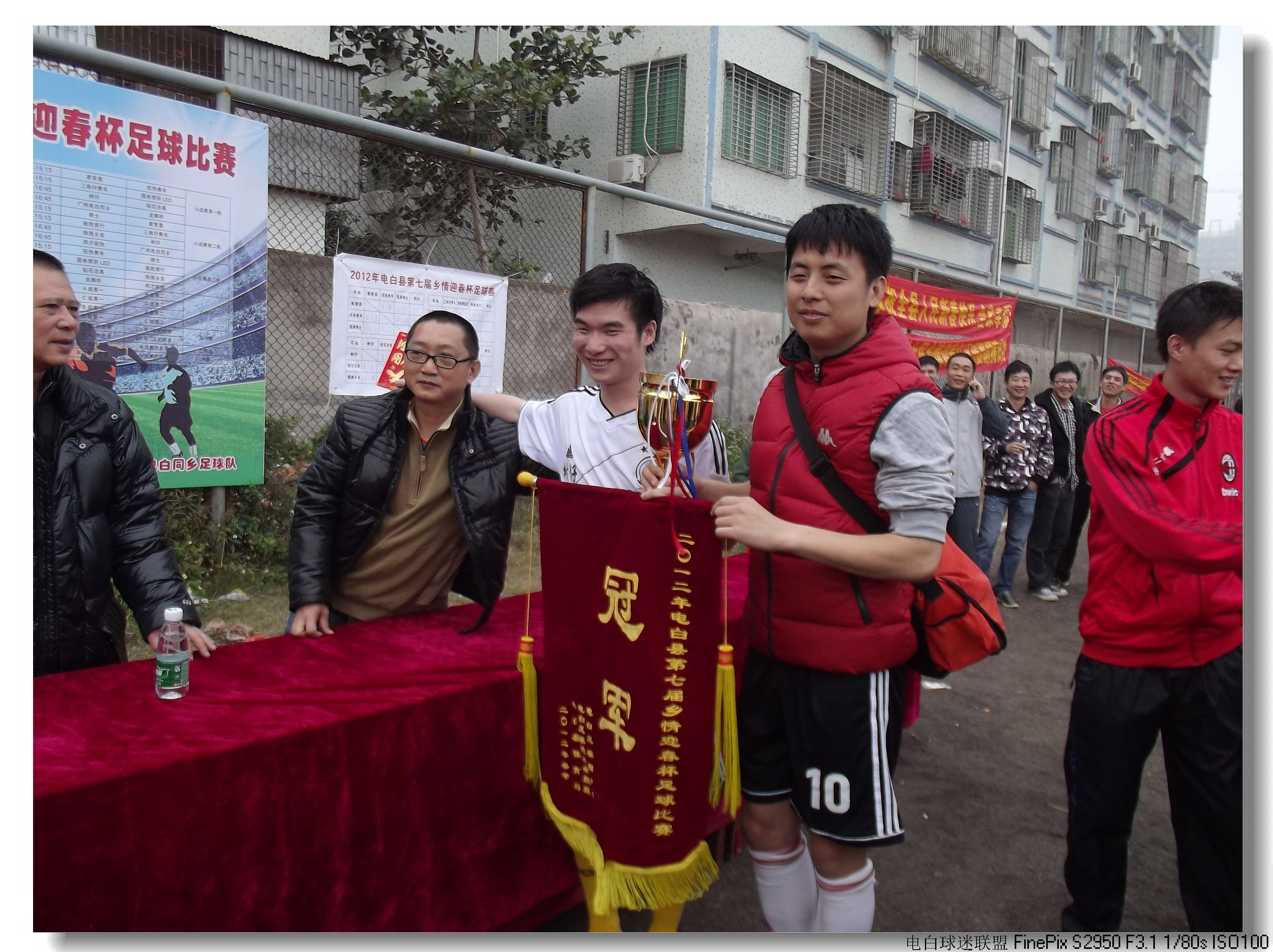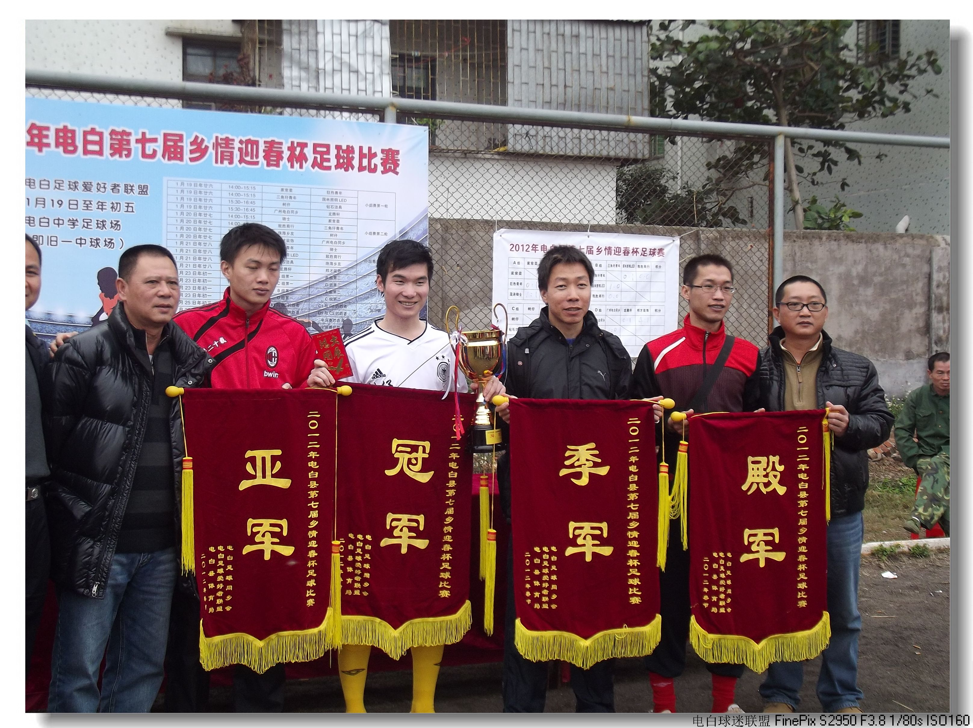 祝贺树仔足球队取得电白县第七届乡情迎春杯足球赛冠军。 祝贺本次比赛中各个球队打出水平,打出风格。 感谢这么多年一直无私支持电白足球发展的邱指导、胆队、郭靖、大饼、老解、阿SIE等等热心人士! 本次迎春杯足球赛,树仔队确实很出色,而且也没有以往的那种火气,实至名归。 也许是因为大环境的原因,不是太多年青人喜欢足球了,以致现在要找几个十几岁的好球之人,不容易,多少有些惆怅。 祝大家新年愉快!心想事成!