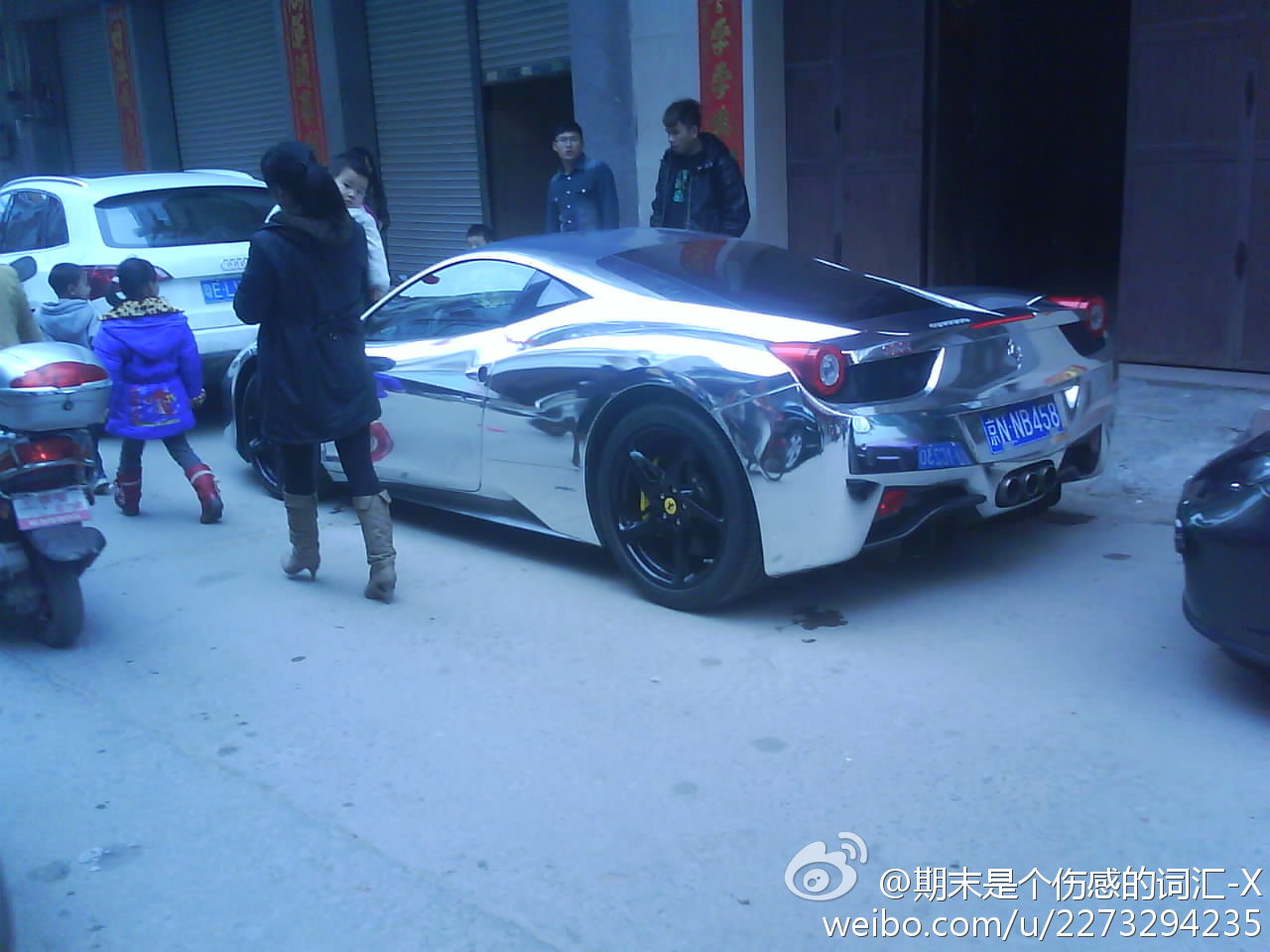 [attachmentid=290446][attachmentid=290446]广州唯一一部电镀车身的法拉利458在电城出现,车牌是牛逼458.。。。后面还有一部保时捷911,这部电镀458经常在广州的珠江新城出现。。