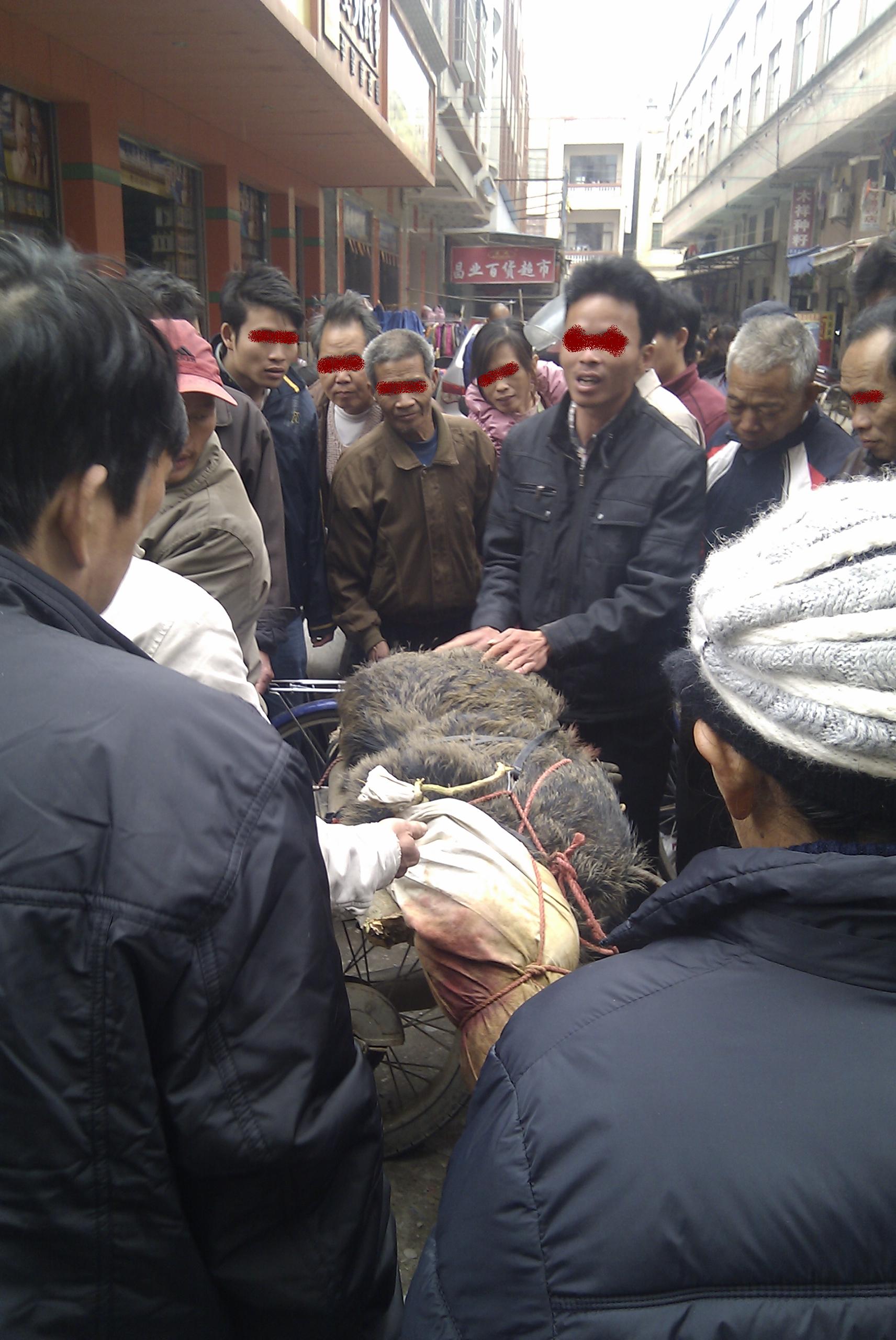 这几年都有山猪下来吃我妈妈种的的红著,06年有个小山猪在我家门前冲过,速度快到我都没看清是什么,之后它走下田,落下小溪给村民打死了,我妈妈也去分了一份,这是我吃过味道最好的猪肉,在这也向那只山猪忏悔,对不起,请原谅。