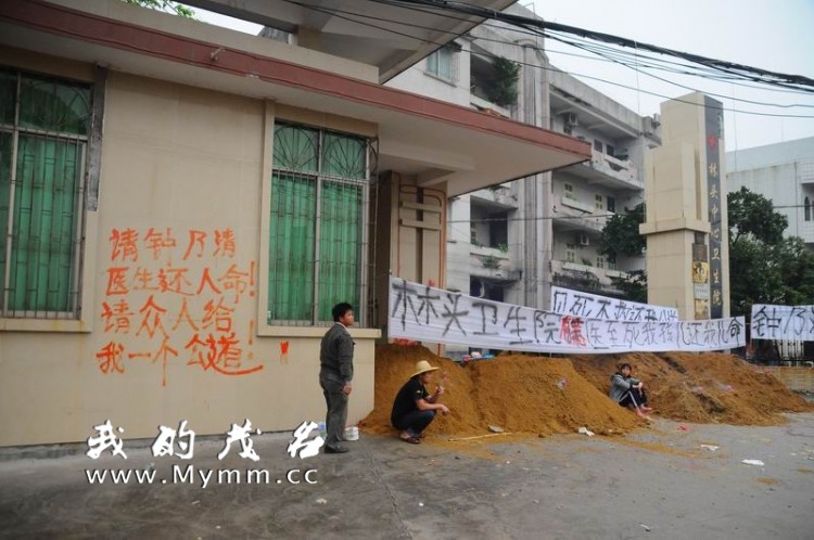 3月8日在广东电白林头卫生院出现了不该出现的一幕,如图。 据我的茂名网友以及现场的众多围观者透露,7日当地一村妇带自己五个月大的男婴前往该卫生院看感冒,一钟姓老医生看后给了自己配制的药物,男婴出现险恶还未送到上级医院已不治,还听说这医生是已退休返聘回来坐堂。 小孩可怜的母亲只单独影在医院得不到说法,8日傍晚有人运来了泥土睹塞医院的门口,使到医务人员及求医者进出不能,甚至于要半爬半钻才可以艰难出入。。。。 但愿医院对死者家属有个合理的解释和解决的办法,但愿家属有个合理合法的诉求,尽管弱者有时是很无奈。。。。 究竟是不是医生的责任?是应该负全部责任,还是部分责任?? 转载于我的茂名http://x/forum.php?mod=viewthread&tid=66101