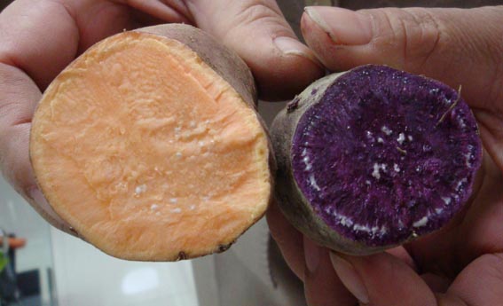 我喜欢吃黄色的粉薯或者紫色的甜薯。