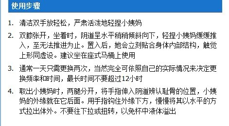 小姨妈没有避孕效果,千万不能当避孕器材使用。对操作步骤不太有信心的、无性经验的女生请慎用。