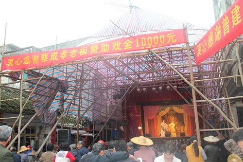 戏台前拉了有出资赞助做大戏老板的名单:蔡成孝、曾建伟等,其他的没有拍到