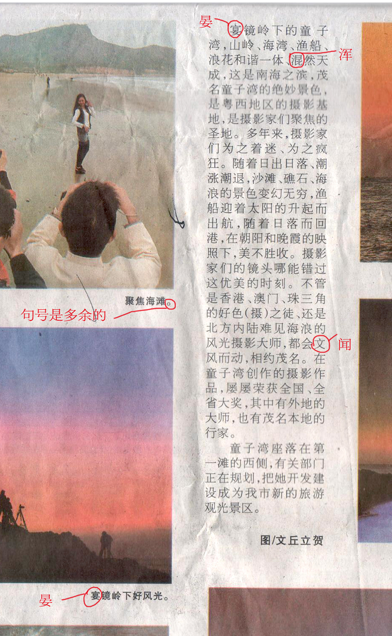 前天,茂名日报的影像版块选登了晏镜岭的图片和文章,本人只是随便看看便发现很多错误。堂堂的茂名日报,竟然出现如此之大的失误,如何向广大读者交待呢?编辑报纸的工作量可能很大,错字难免,如果是打字(录入)错的,可以理解;但是由于文字水平而出现失误就难以置信了――原来编辑的水平不过如此,他(她)如何对得起这个“铁饭碗”?