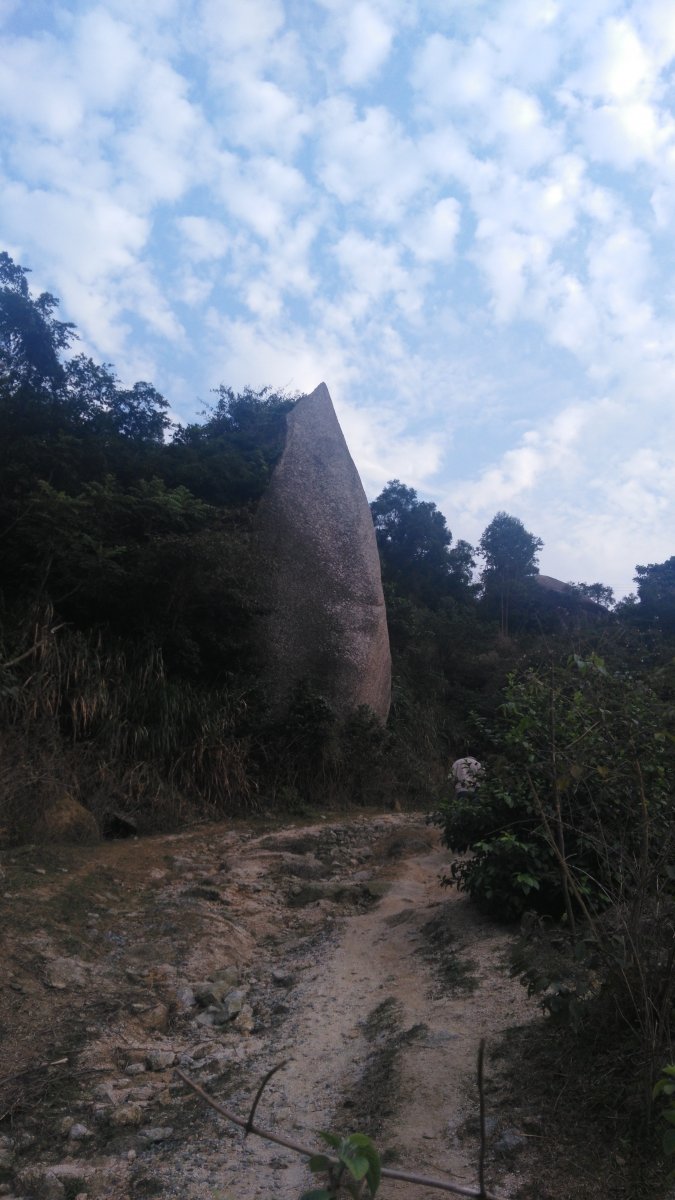 当时,我们从树仔三角园村经牛胸岭的西侧,沿石壁岭(母,小)东面的小溪上面的小道走到石壁岭(公,大)的西面,从防火道面东而上,路很易辨认。