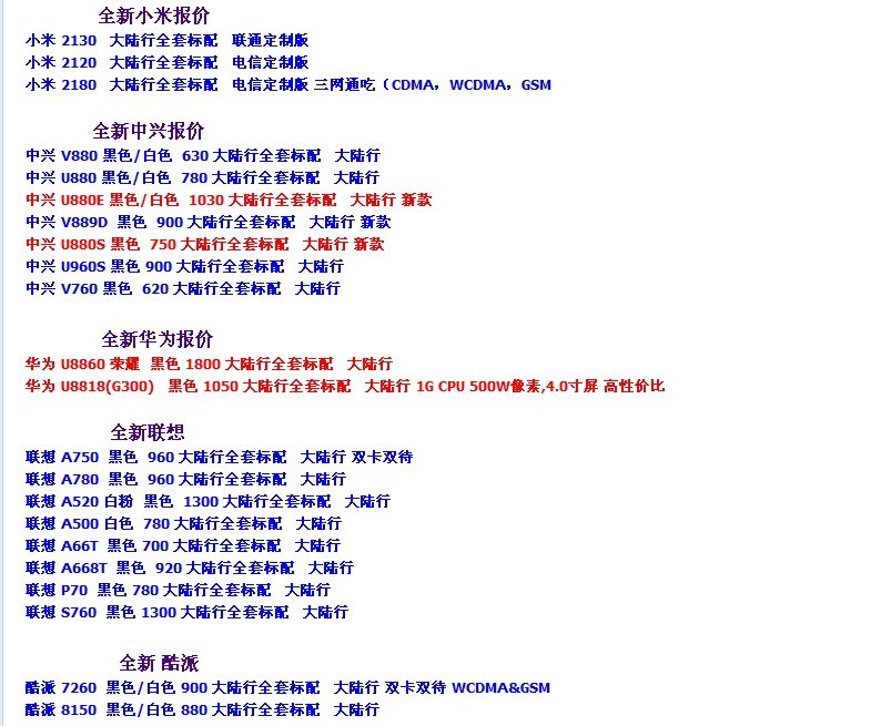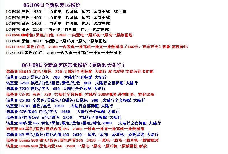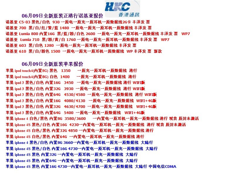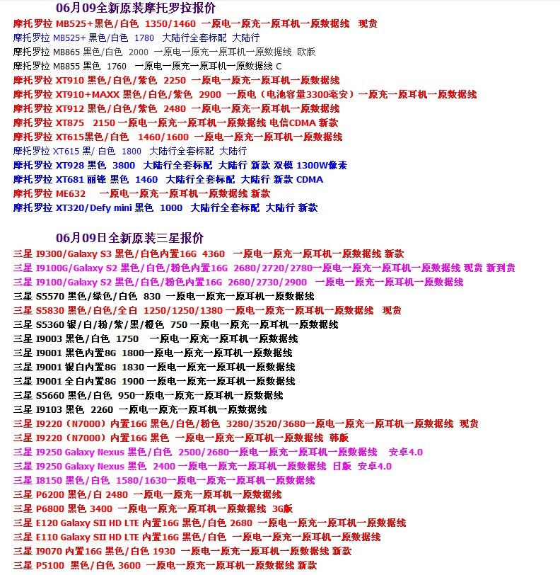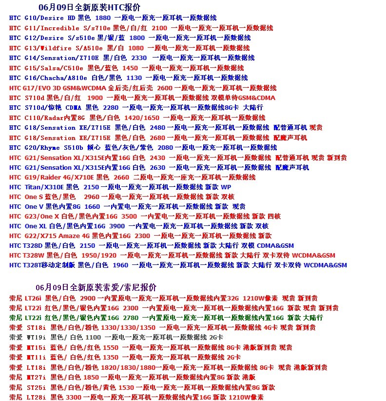 全新原装苹果,HTC,索爱,三星,摩托罗拉等系列报价!每天更新!