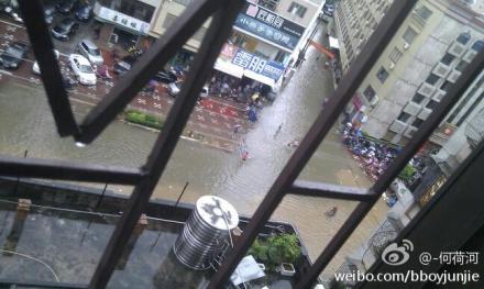 1、解放路转弯即水东医院路段浸水(也即狗肉档门口)