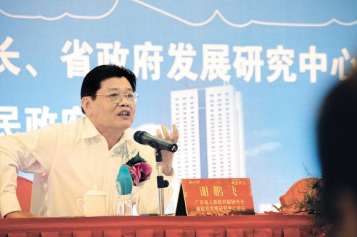 谢鹏飞1950年10月生,2011年4月被免去广东省政府副秘书长、省政府发展研究中心主任、党组书记职务。广东省政府发展研究中心网站显示,该中心是广东省人民政府直属决策与政策研究机构。