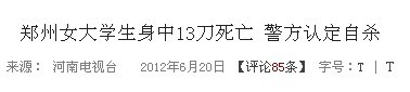 QUOTE(铁腕扭乾坤 @ 2012年06月26日 Tuesday, 12:31 AM) 死者身体无任何外力受伤等痕迹,疑为自杀,死者衣服是法医脱下检查的,最后结论还需待法医解剖确定。 [snapback]3377681[/snapback]