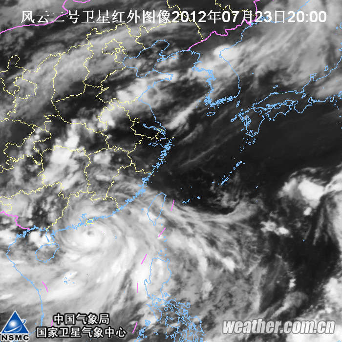 南海热带低压21日23时加强为今年第8号热带风暴“韦森特”(英文名称:Vicente,名字来源:美国,女士名),22日05时其中心位于广东省湛江市东偏南方约540公里的南海北部海面上,即北纬19.3度,东经115.1度,中心附近最大风力8级(20米/秒),最低气压992百帕。中央气象台22日06时发布台风蓝色预警: