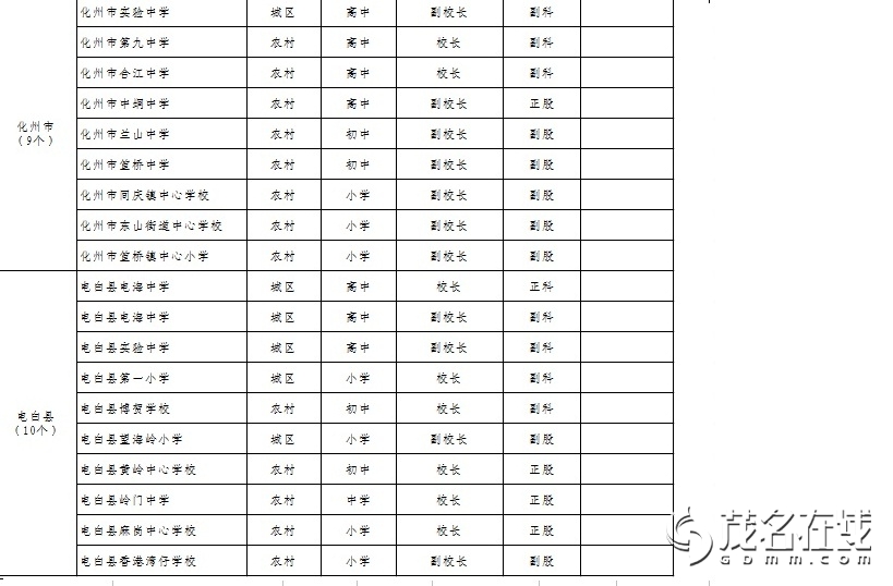 茂名市2012年联合竞争选拔中小学校长