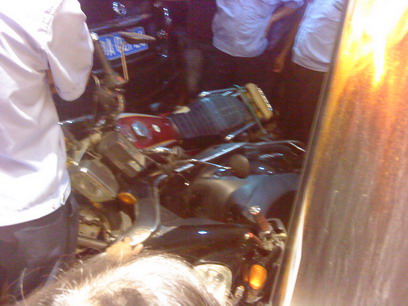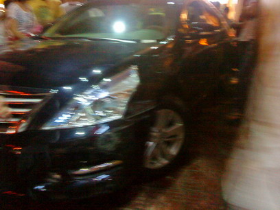 今晚大概八点几钟在水东湾大酒店对下,水东安踏体育专卖店门口.一辆粤A牌凯美瑞小轿车疑"也算听闻"快速倒车车尾撞到安踏体育专卖店门囗,只见有两辆摩托被撞倒,其中一辆压住一位不知是路人或驾驶者?随后巡交警到现场,120救护车也到位,看情形不是很严重 但却引来众多人围观,交通一度阻塞 小心驾驶!安全第一!