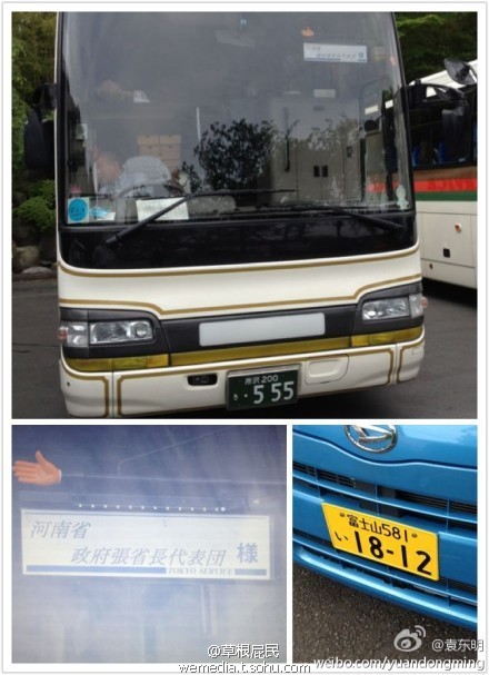 转:昨日在富士山脚下游玩,无意中发现了河南省政府张省长的旅游专车!这位张姓省长大人,出来旅游也不要弄个这样的牌子挂在车窗上吧,生怕大家不知道您是中国的省长吗?好吧,俺也帮您宣传推广一下!大家也帮帮忙,给为张省长转转!by@袁东明