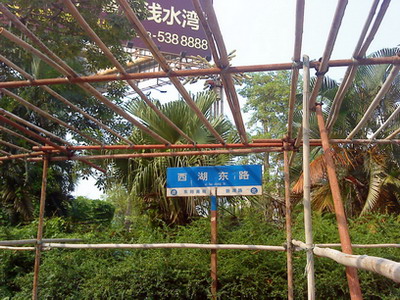或许是鉴于一年一度的传统佳节中秋即将来临,而位于水东西湖东路的广大民众休闲散步的湖边走廊又搭上了一层厚厚的铁架,不知此举是便民或扰民?或许当中也有利弊吧?只望在过后能尽快解除这厚密的嫁衣,还路于民.