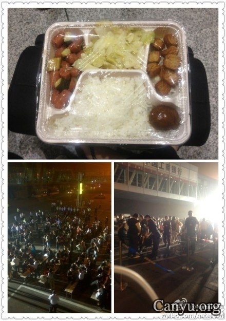 新浪微博网友“Natalie步”说:“从没见过这么多警察。。。发了份盒饭和一瓶水 完全没胃口”。(网络图片)