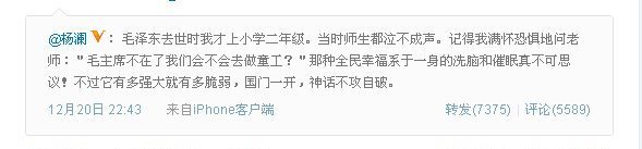 在毛泽东身后的时代里,对毛泽东时代的历史记录的污点吹毛求疵,而缄口号不提当时的成就已然成为一种风尚――深恐提及后者便会被视为对前者的辩护。然而,对一个基本事实的承认,即毛泽东时代在促进中国现代工业改造――而且是在极为不利的国际国内条件下做的――过程中取得了巨大的成就,并不就等于是为历史作非分的辩护。如果没有毛泽东时代发生的工业革命,80年代将找不到要改革的对象。”
