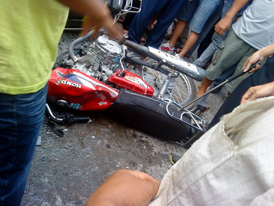 据闻今日下午在水东汇景广场大门前路段,有两名飞车抢夺嫌疑人,驾着一辆红色125摩托,"可能是抬上警车那辆",疑是跟踪一辆助力车主,疑是为了抢守驾助力车主男的头颈部金链,疑失手后两车相撞,听闻嫌疑向车主撒疑似石灰粉后,逃之,现场疑似留下作案嫌疑车辆,后警方赶到,欲知更具体,楼下接上!