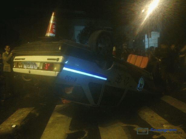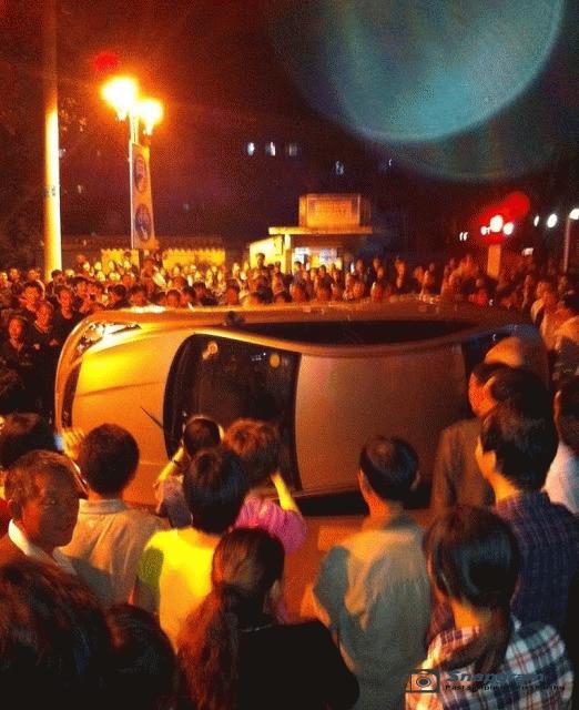 晚上7时,有一辆现代汽车,欲通过堵路群众,被拦截下来,车主拿出铁棍要打人,群众一怒之下把车掀翻。一辆试图通过的物流车亦被砸碎了玻璃和轮胎被放气。