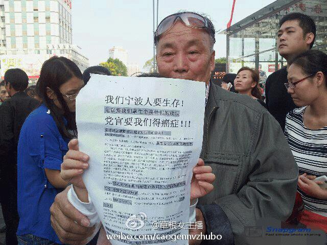 当地民众在网上呼唤宁波市民明日(27日)上街抗议,在市中心的天一广场聚集,估计有数万人参加。