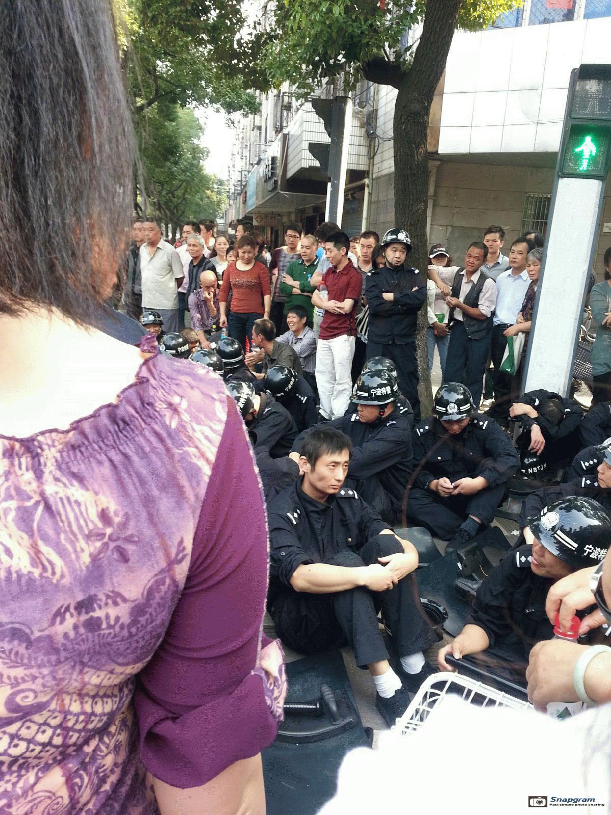 镇海区主干道入口全被警察封锁,交通要道皆有特警把守,但仍有上万人冲破封锁线,走上街头举行示威。