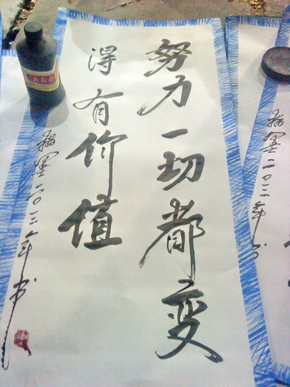 今晚走在街头,见多人围观,好奇近观,只见一白发老人正在用右手指沾上墨汁在一张长方形白纸张上写着诗词,在旁祥听,原来此老人户籍广西姓廖,手机1599xxxxxxx,在水东各街头从事此手艺一段时间,诙家正在写的是在场客人订写的词句,而旁边已写好铺设在地上的可能也是有些客人订好的?可能是在等墨汁干了再来付款领取吧?而每张诗词价格伍元,听有客人说不算贵?都是靠手艺稳食,觉得挺靠谱,你怎么看