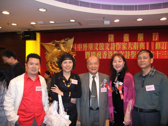 珠海代表陈艺毅在香港与海梦合影((左起 陈艺毅、葵花、海梦、灵子、海边老人)
