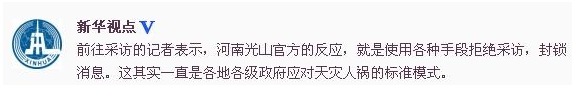 新华社:封锁消息是各地政府对天灾人祸标准模式