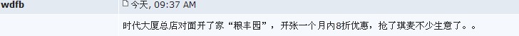 W wdfb 荣誉主席 注册 2005-09-04 消息 9,729 反馈评分 297 点数 191 2012-12-20 #8 时代大厦总店对面开了家“粮丰园”,开张一个月内8折优惠,抢了琪麦不少生意了。。