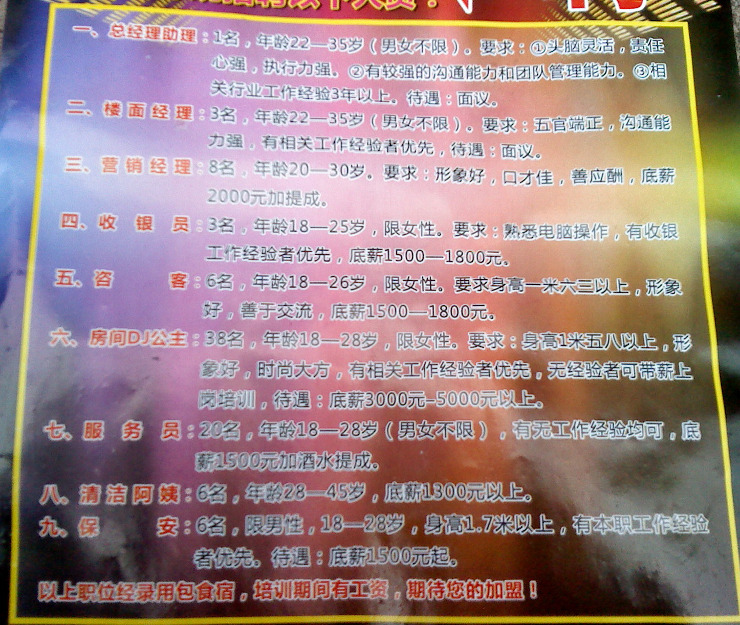 汪洋大海 荣誉会员 荣誉会员 注册 2011-03-01 消息 12,156 反馈评分 348 点数 191 年龄 67 性别 男 2012-12-23 #22 dj先生待遇高,除基本工资外,每天加100元,但要陪酒。