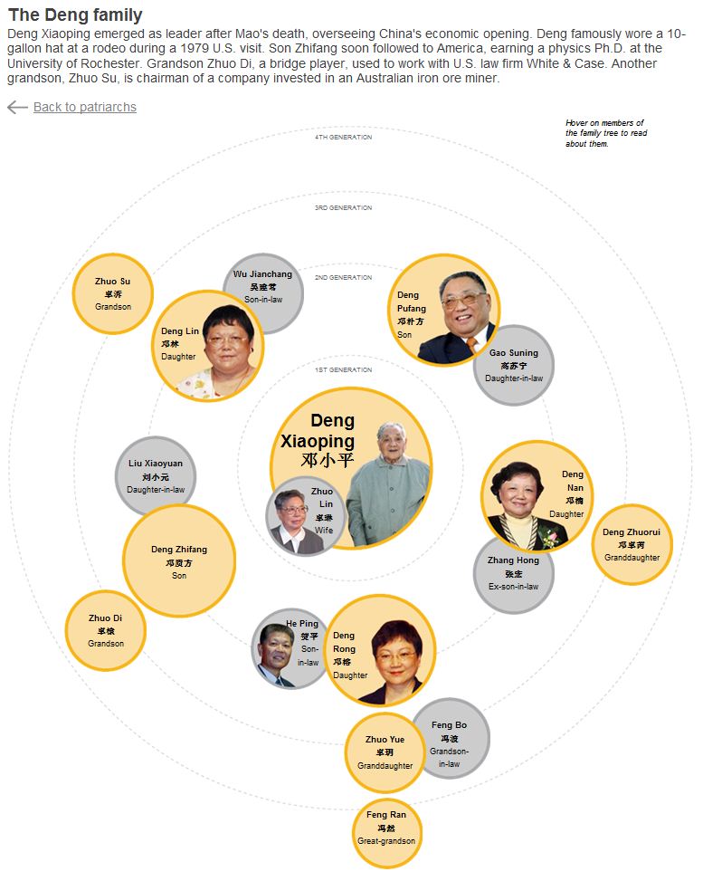 彭博报道节选:八大元老的儿子辈(太子党)中,至少有26人在国有企业担任高级职务,他们操纵了中国的经济。而在追踪的31名“红三代”(“孙子党”)中,至少11人在经营自己的企业或是占据企业高管职位,多数是在金融和技术领域。