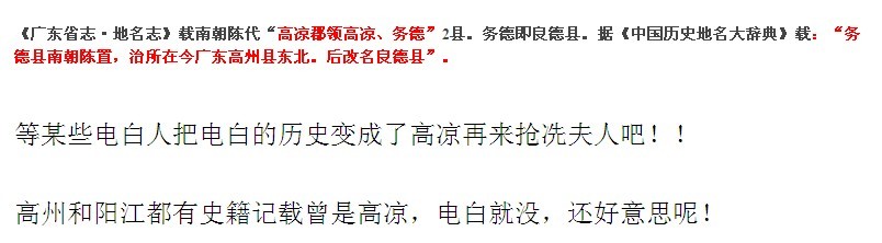 高州和阳江都有史籍记载曾是高凉,电白就没,还好意思呢!