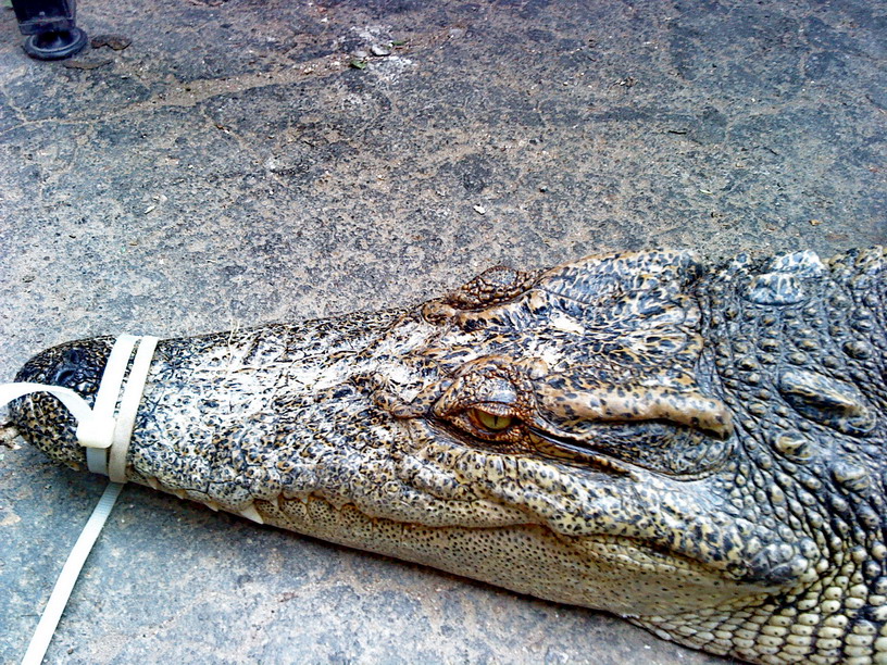 事发今日在水东西湖门囗斜角,刚巧途经,现场有很多人围观,也算俺一个,桌面上有血淋淋的鳄鱼头部与身体各部,其中有些放在胶篮里,那些就不上传了,隐若听到68元一斤,诂计是养殖的吧?也听有群众说这是国家保护动物等话语...,俺有事先走一步,过后的情境就不详了.