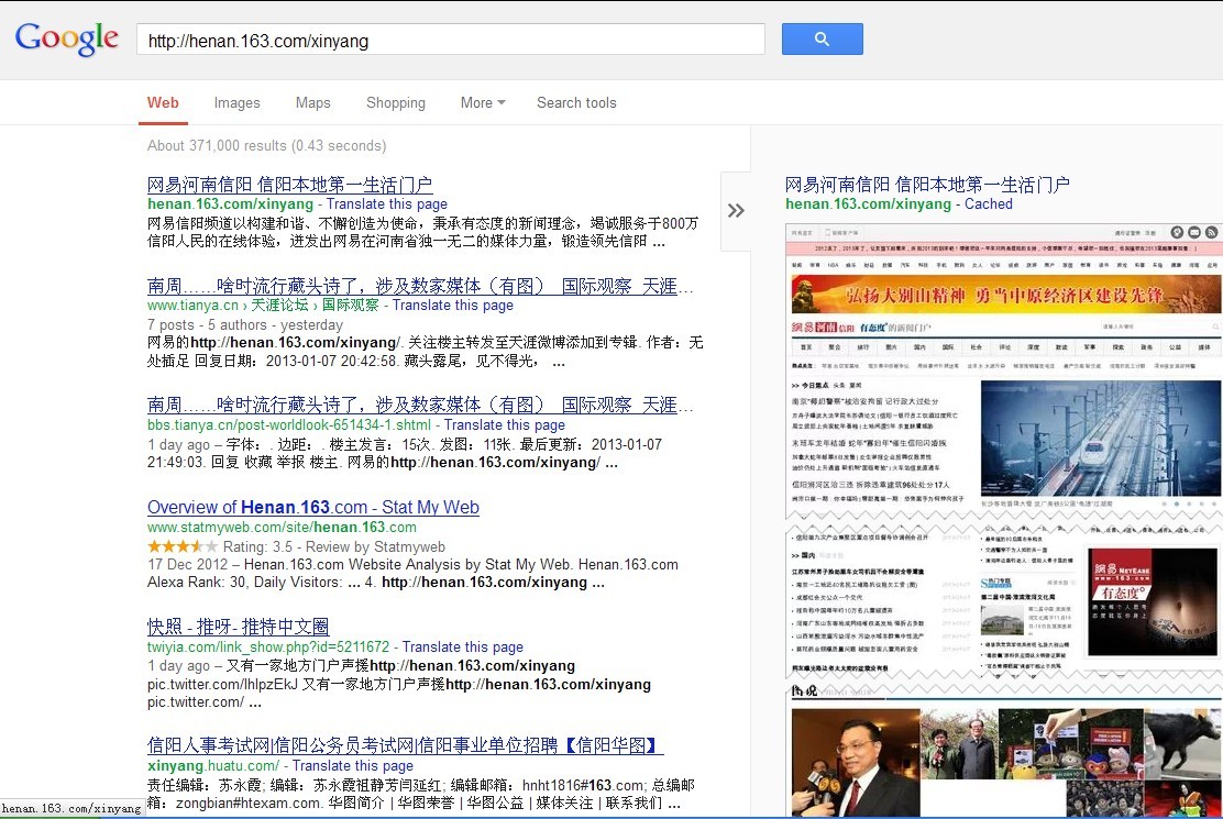我以为是他们杜撰的,原来是真的,因为网站会经常更新,我打开网站时已经换版面了,我重新用谷歌搜索一下http://henan.163.com/special/022701IT/xinyang128.html,然后用预览看看,果然是真的,因为谷歌快照有延迟,所以能证实。虽然分辨率不高有点模糊,但还是能辨认哟。