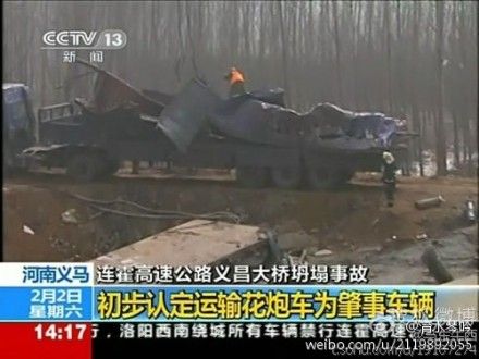这是中央电视台新闻频道指认的肇事车辆。 ,除了车箱顶及四周壁被炸掉外,货车大体完好无损,鞭炮连货车本身都炸不毁,怎么炸得毁车下的桥梁?(马东牛西)