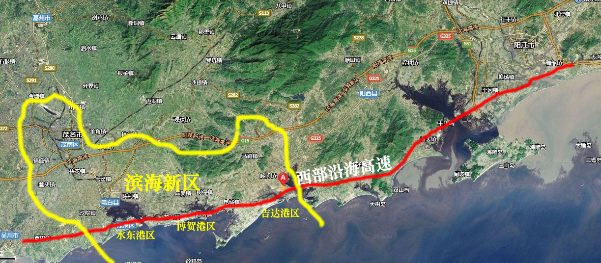 茂名滨海新区,需要西部沿海高速。
