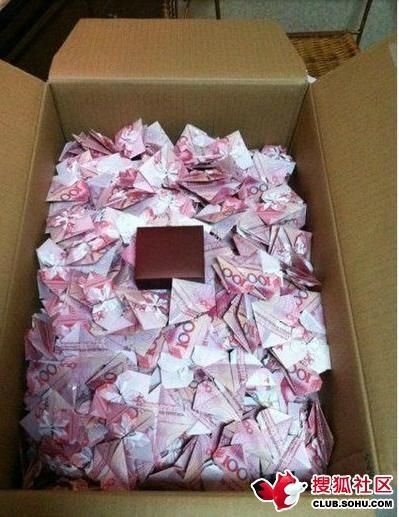我在想,要多少100才能叠这么一箱子啊