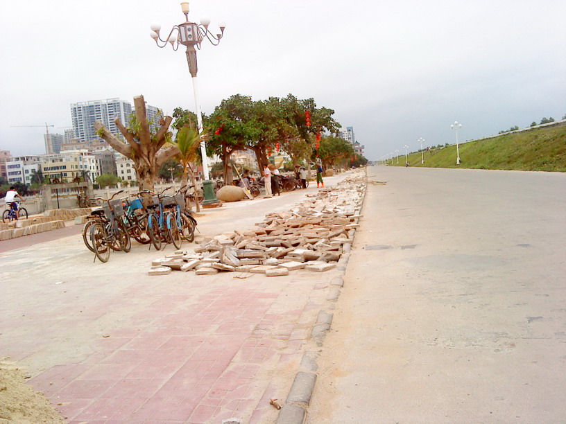 楼主啊,你也见识太“广”了吧?红色部分叫绿道,不是人行道的,是自行车道,过年前为了政绩,只通了单向单车道,现在“第二期”工程,扩展到双向单车道。上次看到最后一张图的位置,差点没把我朋友吓死,他说:“万一下雨,转弯不漂移才怪。”终于扩宽了,好事!