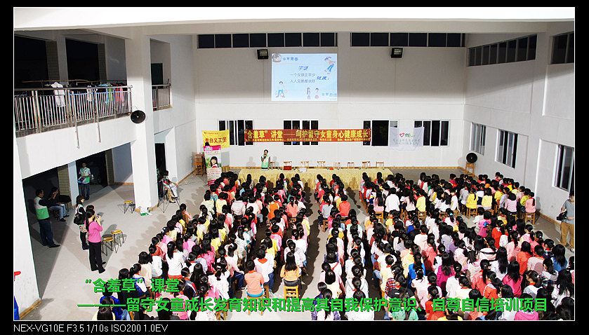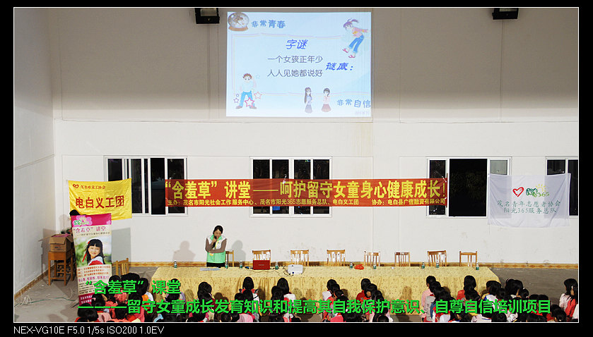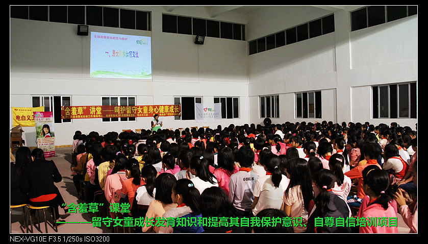 杨梅寄宿学校约学生二千人,这次我们将为三至六年级约500位女留守女童进行含羞草讲堂。19:00时,讲堂首先由阳光365志愿服务总队骨干谭丽红向女童讲授女子生理卫生知识,通过视频课件图文并茂地讲述了女子在成长过程中身体的变化和自我护理的安全知识,谭丽红讲师生动谐趣的语言,使原本在女童心中难以启齿的事情,变得自然平常,在轻松活泼的一问一答过程中,女童对生理卫生知识有了充分认识。自我安全保护知识由黄化红主讲,红姐从自身发生过的事例,教女童怎样去防范突发意外事件,在发生意外事件后,该如何处理,到如何识别坏人的骗局等,一一作了详细说明。红姐的精彩演说,同时将自己的切身体验与女生们分享,一幕幕仿若电影情节的分享将女童们带入了一个寓娱于学的心灵之旅