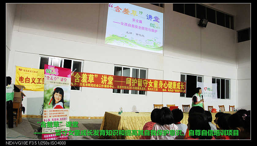 茂名市地处粤西山区,有700万人口,外出务工人员达140多万。外出务工人员奔赴四方,留下51.36万留守少年儿童,数量位居全省第一。茂名市是广东省留守儿童的重灾区。这些留守儿童占义务教育阶段学生人数的49.16%,其中女童约占一半。因为父母不在身边,留守儿童缺失亲情、思想的引导和学习的辅导。而身体成长发育,作为女生,要面对更多的问题和困难。留守女童对自身的发育懵懵懂懂,一知半解;自我安全保护意识单薄,不懂求助;没有正确的人生观与世界观,容易被坏人诱导,误入歧途。最近化州留守女童被性侵犯反抗被砍,和全国各地有关留守女童被侵犯的报道屡见不鲜,有些甚至被侵犯几年之久也不懂或不敢与家人诉说。“含羞草”讲堂送上处于开始发育阶段女童最需要生理卫生知识、自我安全保护知识和自尊自立讲座、心理辅导,让女孩身心健康成长。让阳光不再是只在风雨后!