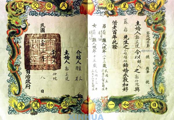 我看过我父母的结婚证,但这里没有呀,象奖状的……