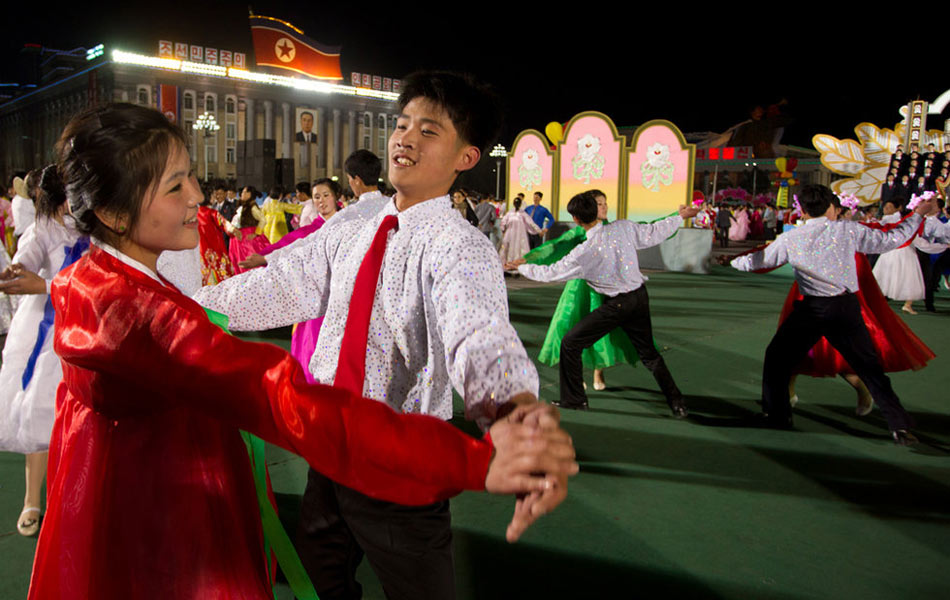 朝鲜举办“四月之春”――广场文艺,庆祝太阳节。