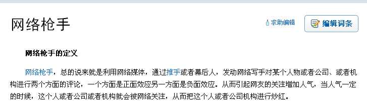 总的说来就是利用网络媒体,通过推手或者幕后人,发动网络写手对某个人物或者公司、或者机构进行两个方面的评论,一个方面是正面效应另一方面是负面效应。从而引起网友的关注增加人气,当人气一定的时候,这个人或者公司或者机构就会被网络关注,从而把这个人或者公司机构进行炒红。网络枪手的出现,是中国一种非常特殊的网络营销行为,通常是一些网络公关公司雇佣的枪手,他们在论坛、博客上使用各种正面的、片面的、偏激的而具有扰乱视听功能的文字来诋毁竞争对手。一些想要提高流量的网站也会有枪手去同类型的博客网站留言攻击,以期待将流量引入他们的网站。通常网络枪手以谩骂、诽谤为主,语言通常比较夸张。网络枪手的主业他们的主业,是去竞争对手的网站或者是宣传阵地“骂街”或者进行辱骂、 诋毁、甚至发布不利于竞争对手的虚假信息,造成普通用户无从辨别信息的真伪,企业品牌受到很大伤害。